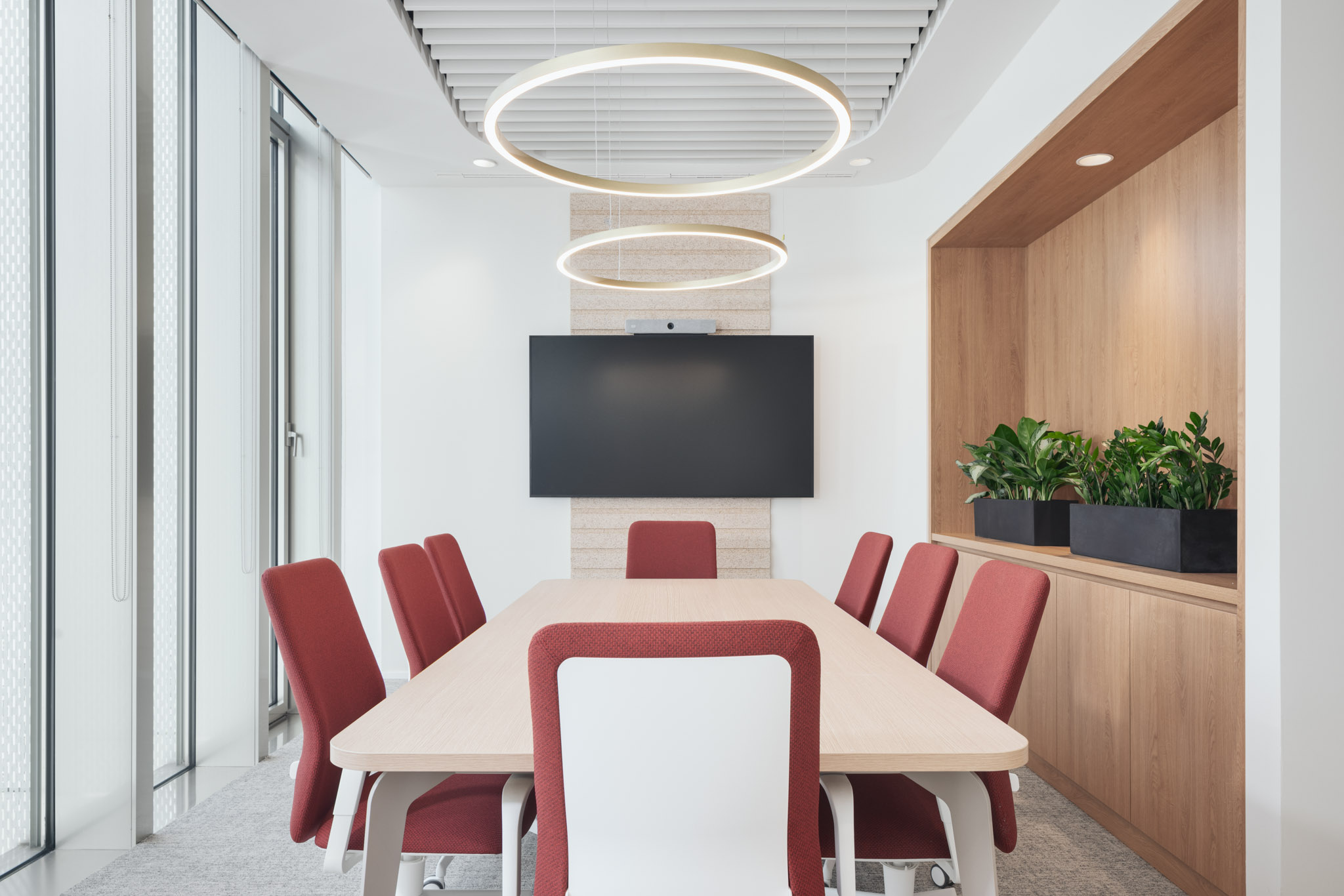 Après un AO restreint, Tétris, en contact avec l’agence d’architecture de conception CALQ, a été retenu comme partenaire principal pour réaliser les travaux de parachèvement dans un délais très court de 2 mois. Les lots techniques ont été confiés séparément aux entreprises ayant réhabilité l’immeuble. Le projet riche en détails architecturaux et techniques, sources de lumières directes et indirectes combinées, associe le verre, le placage bois avec des cloisons vitrées PRIVALITE à contrôle d’opacité et un ensemble homogène de parquet en chêne, cloisons, portes et de mobilier sur mesure.